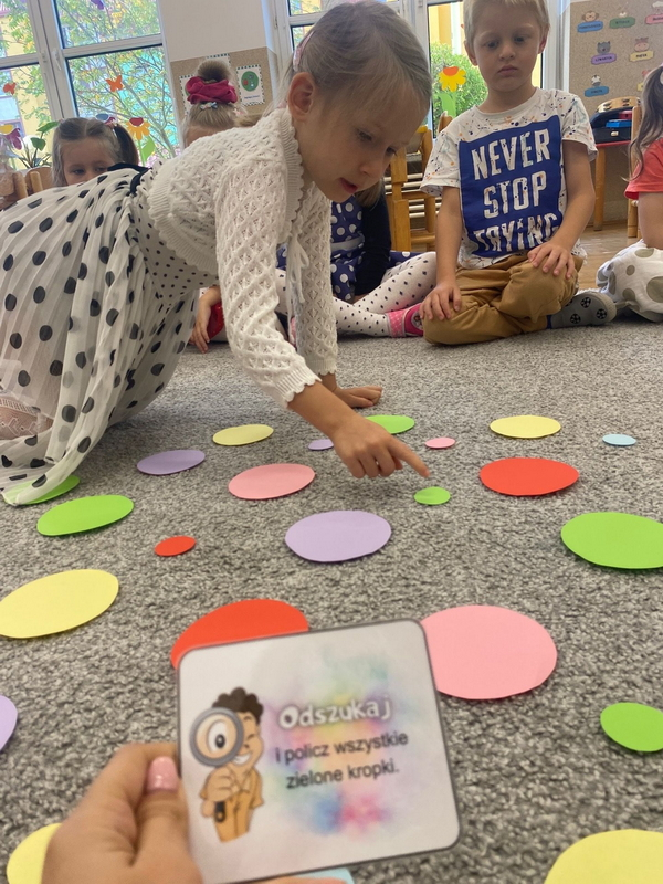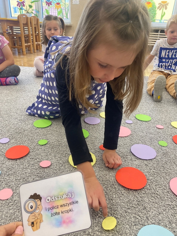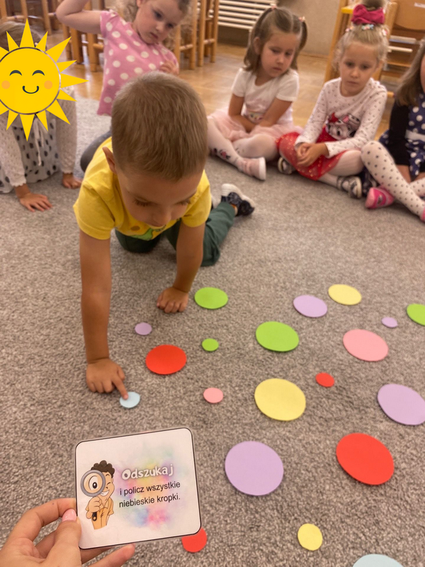 Dzieci chętnie wzięły udział w zabawach grupowych oraz zajęciach plastycznych związanych tematycznie z kropką.